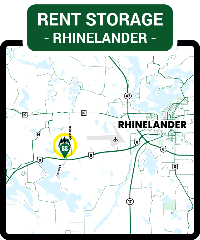 Eagle River 510 US Hwy 45 SouthEagle River, WI 54521 Rent Your Space Today! LARGE UNITS with EXTRA-LARGE 12′ DOORS Rhinelander 6634 Highway 8Rhinelander, WI 54501 Rent Your Space Today! BRAND-NEW FACILITIES • WELL-LIT GROUNDS24/7 UNIT ACCESS • UP TO 60’ WIDE AISLESCONVENIENT ONLINE MONTHLY PAYMENT SYSTEM View Facility Drone Tour